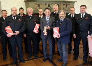 „Die Kameradschaft untereinander hat auch was von Geborgenheit“, sagt Pfarrer Werner Vedder im Rückblick auf „15 Jahre ganz nah bei den Menschen“. Um Gefühlslagen ging es viel, als jetzt wieder langjährige Feuerwehrleute zur Verabschiedung im Rittersaal des Burghofmuseums saßen.