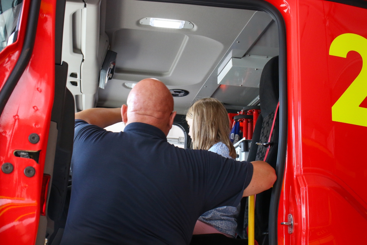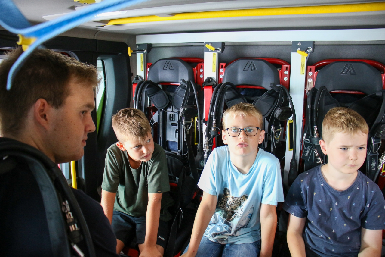 An der nächsten Station konnten sich die Kinder mal ein Feuerwehrfahrzeug etwas näher ansehen. Die ehrenamtlichen Einsatzkräfte zeigten, was alles auf so einem Fahrzeug verlastet ist und wofür dies im Einsatz benötigt wird.