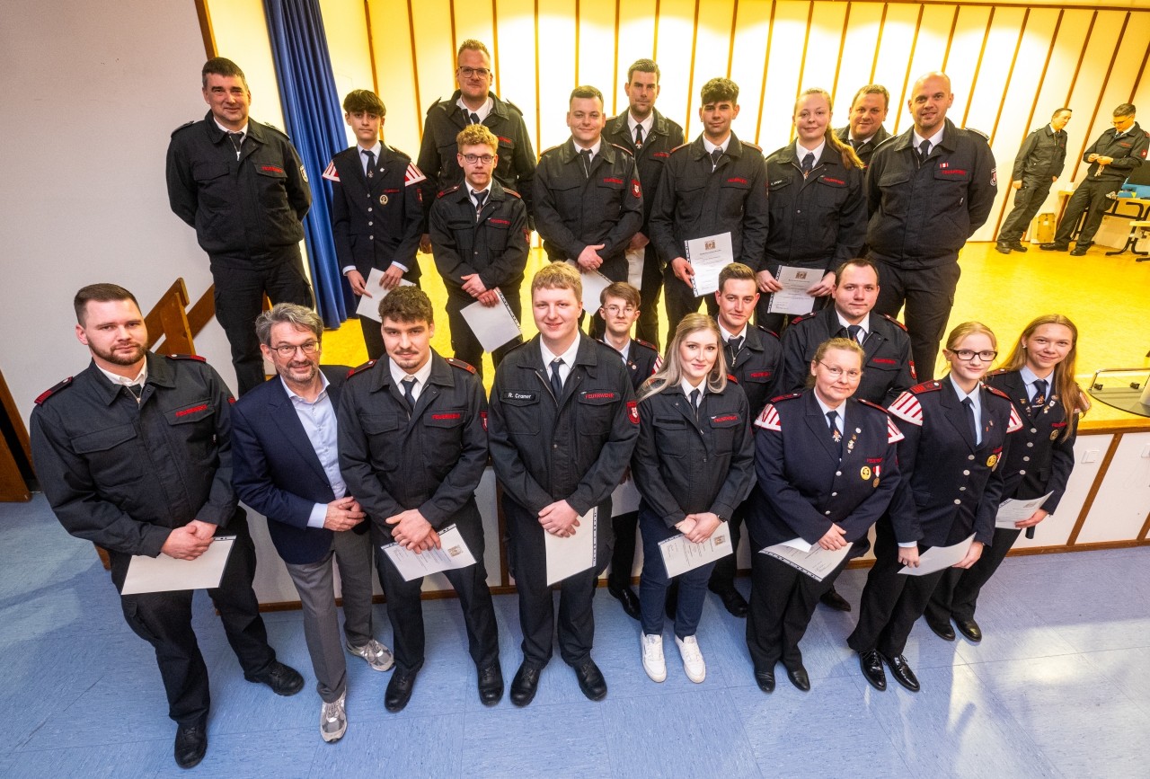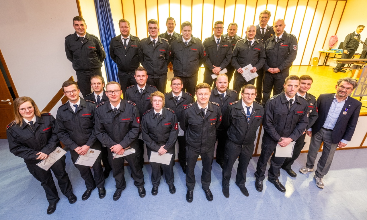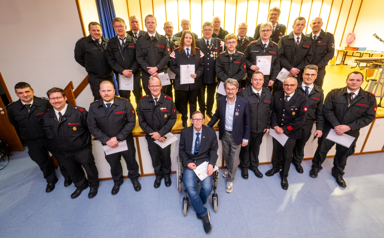 Neben diesen besonderen Momenten gab es zahlreiche Ehrungen und Beförderungen, mit denen das Engagement und die Verdienste vieler Feuerwehrmitglieder gewürdigt wurden.
