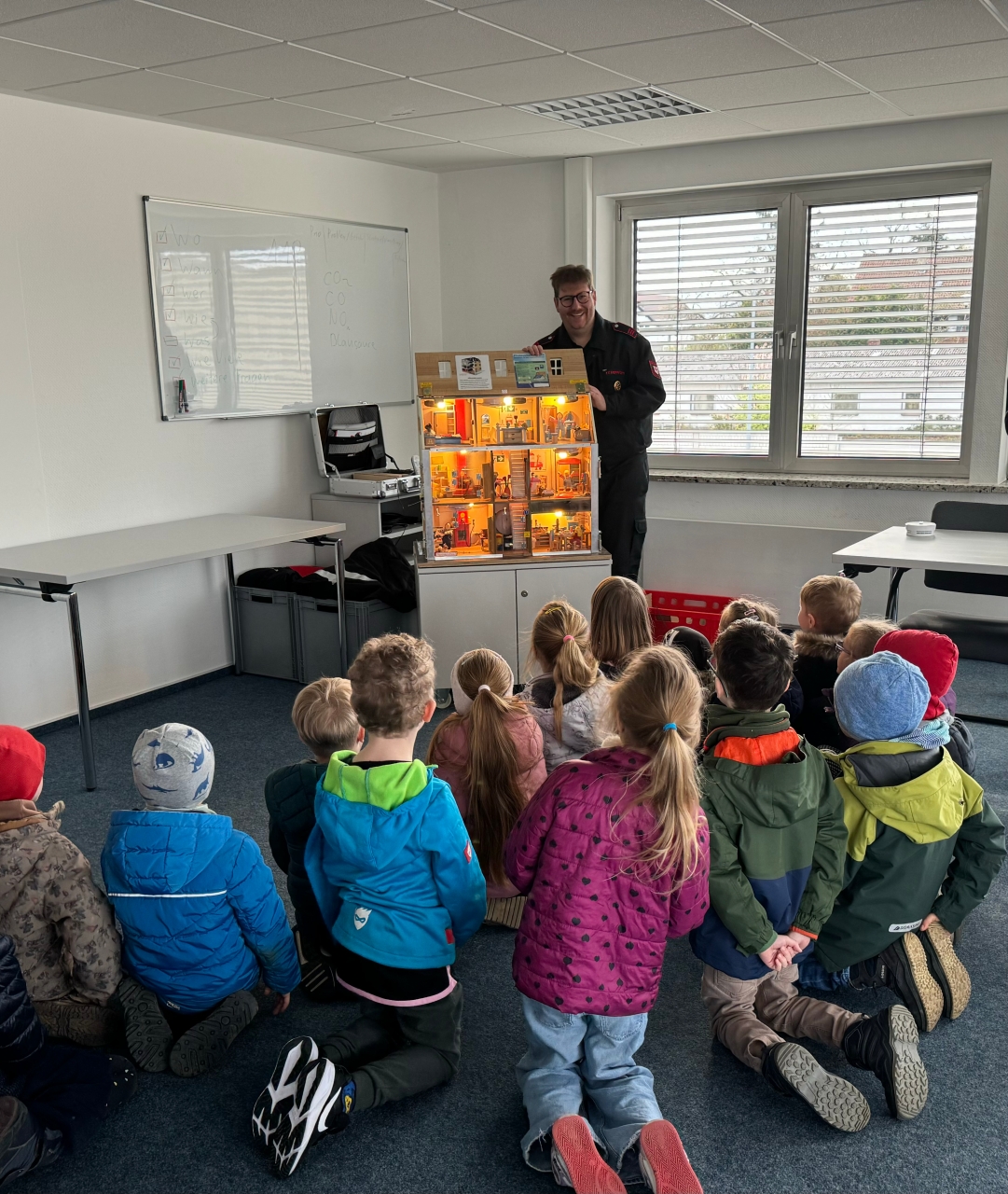 Anschließend ging es in den Schulungsraum, wo bereits das sog. Rauchhaus auf sie wartete. Anhand dieses Rauchhauses wurde den Kindern verdeutlicht, wie sich Brandrauch in einem Haus ausbreitet und wie sie sich davor besser schützen können.