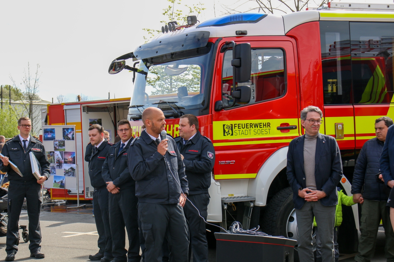 Im Anschluss stand noch ein weiterer Programmpunkt an. Bei der Feuerwehr Stadt Soest werden Neufahrzeuge immer an sogenannte „Fahrzeugpaten“ übergeben.