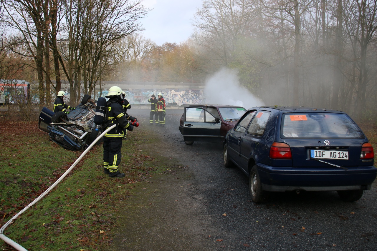 Das Institut der Feuerwehr NRW (kurz IdF) ist die Landesfeuerwehrschule und die zentrale Ausbildungsstätte für die Feuerwehren in NRW (mehr unter www.idf.nrw.de). Das IdF besitzt eine große und moderne Übungshalle und ein größeres Außengelände. Auf diesem Außengelände können eine Vielzahl von Einsatzszenarien simuliert werden. Da am Wochenende keine Lehrgänge stattfinden, steht das Außengelände den Feuerwehren für interne Ausbildungstage zur Verfügung. So kamen auch wir am vergangenen Samstag in den Genuss dieser Ausbildungsmöglichkeit.