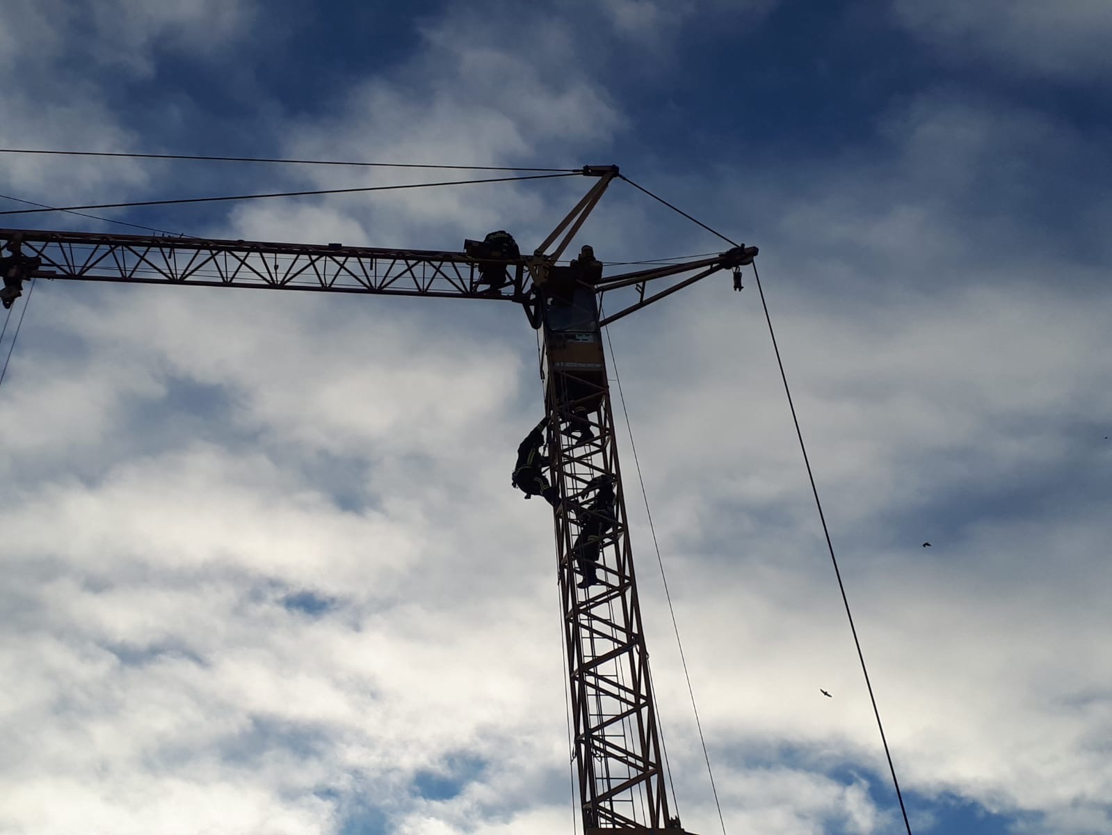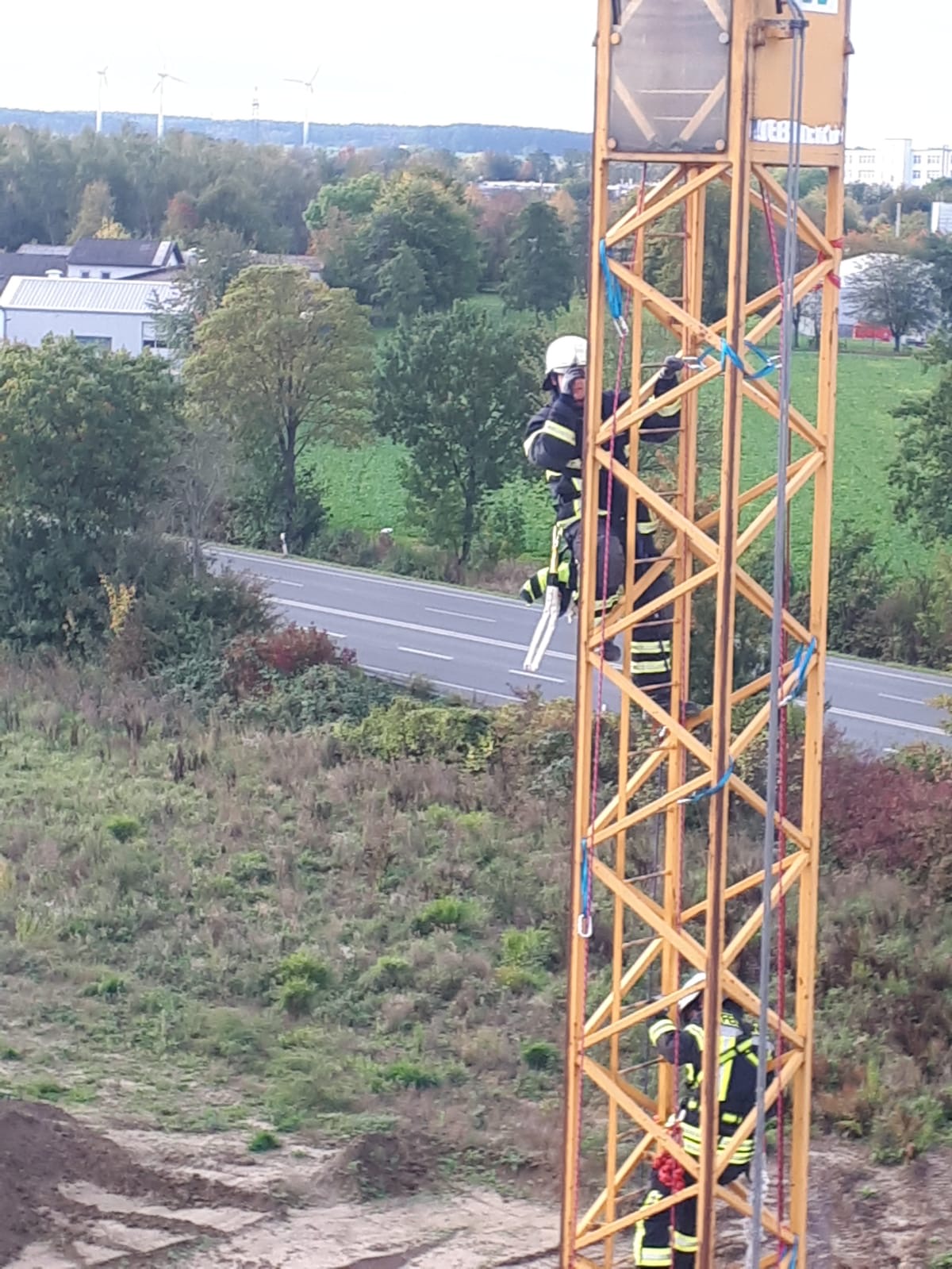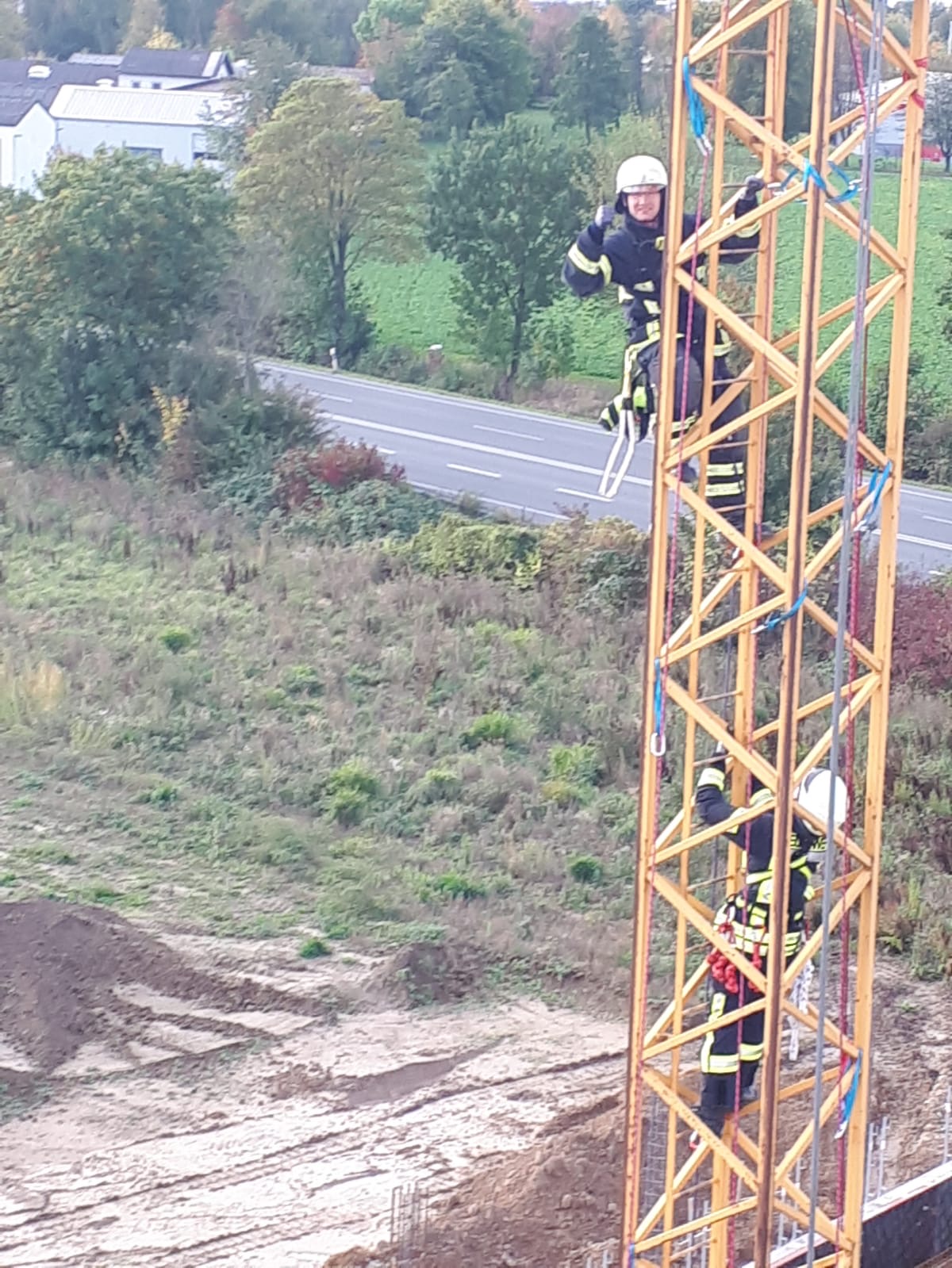 Was war geschehen? Eine Person war in den Kran geklettert und hat sich dabei offensichtlich selbst überschätzt – so lautete das offizielle Übungszenario für die Gruppe Absturzsicherung.