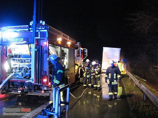 Bei eintreffen der Feuerwehr war das Feuer schon teils auf die Ladung des Aufliegers übergegriffen. Die Maßnahmen beliefen sich auf das absichern der Einsatzstelle und das Löschen mittels Schnellangriffs. Zur Kontrolle nach Glutnester wurde eine Wärmebildkamera eingesetzt. Die Einsatzstelle wurde an die Autobahnpolizei übergeben.