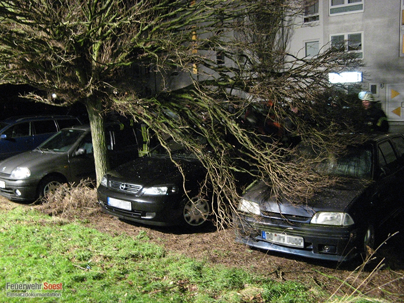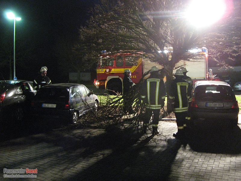 Ein größerer Ast drohte bedingt durch die Wetterlage auf ein Auto zu stürzen. Durch die Feuerwehr wurde der Ast mittels Kettensäge entfernt.