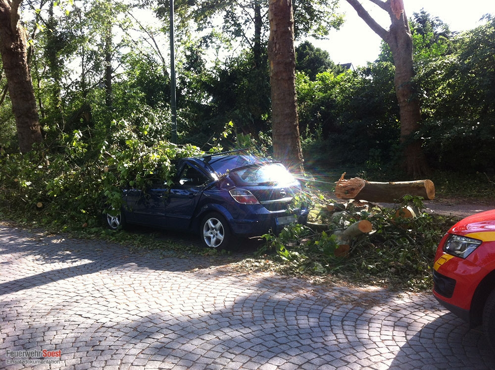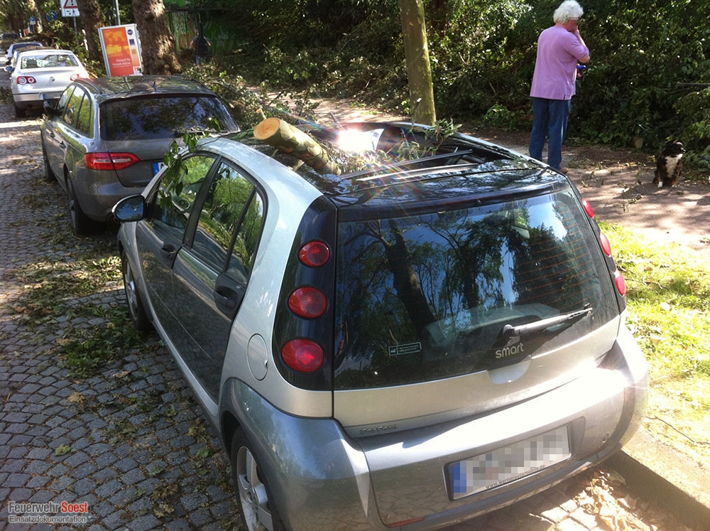 Im gesamten Stadtgebiet kippten Bäume um, lagen lose Äste in Baumkronen, fielen Dachpfannen von den Dächern oder liefen Keller voll Wasser.