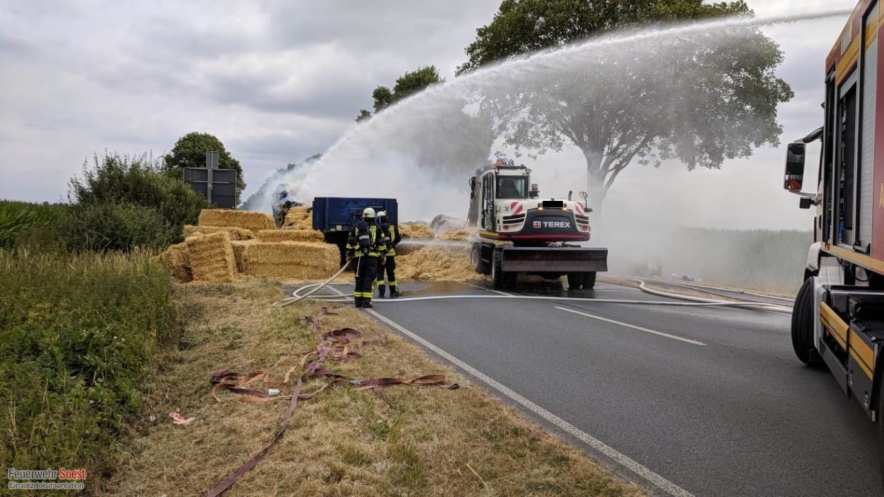 Die Feuerwehr Bad Sassendorf wurde bei dem Brand eines Strohtransporters unterstützt.