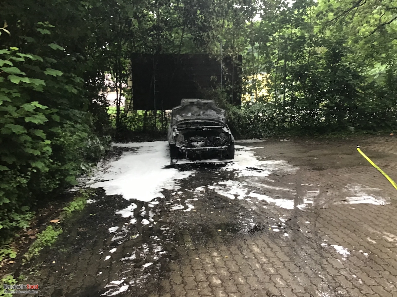 Bei unserem Eintreffen stand der Pkw in Vollbrand. Das Feuer wurde von einem Trupp unter schwerem Atemschutz gelöscht.