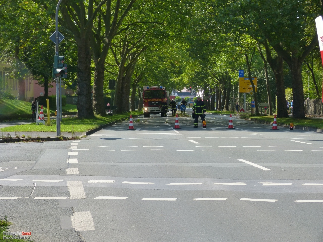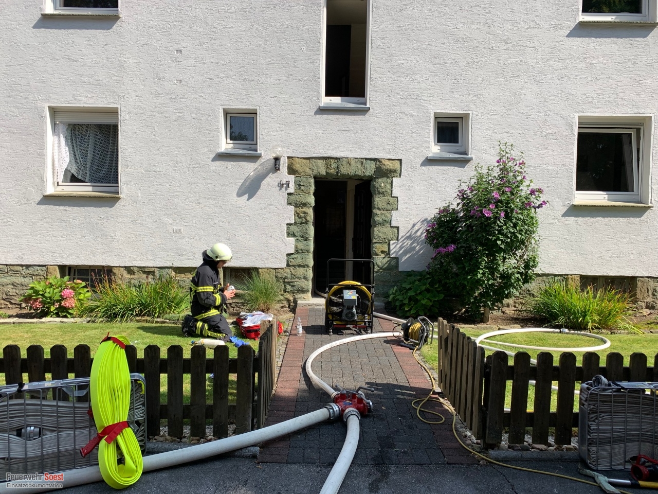 Ein gemeldeter Küchenbrand bestätigte sich beim Eintreffen unserer ersten Kräfte. Durch einen Nachbarn konnte die Bewohnerin bereits aus der Wohnung gerettet werden. Unsere Kräfte übernahmen die Erstversorgung der Frau und ein Trupp unter schwerem Atemschutz ging in die Brandwohnung vor. Das Feuer konnte recht schnell gelöscht werden. Anschließend führten wir noch eine Belüftung des Hauses durch. Die Bewohnerin wurde anschließend mit einem Rettungshubschrauber in ein Krankenhaus transportiert.