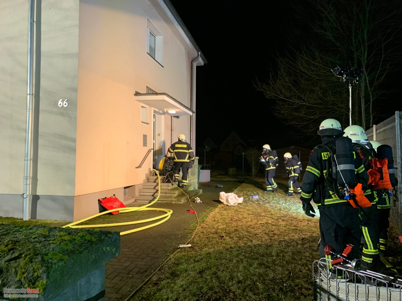 Wir wurden zu einem gemeldeten Wohnungsbrand mit Menschenleben in Gefahr alarmiert. Beim Eintreffen unserer ersten Kräfte bestätigte sich diese Meldung. Eine Person sollte sich noch in der Brandwohnung aufhalten. Umgehend wurde ein Trupp unter schwerem Atemschutz zur Menschenrettung in die Wohnung geschickt. Der Trupp konnte die Person sehr zügig finden und nach draußen bringen. Dort wurde sie vom Rettungsdienst medizinisch versorgt und anschließend in ein Krankenhaus transportiert. Der Trupp ging parallel zurück in die Brandwohnung und führte dort die Brandbekämpfung durch. Die weiteren Personen konnten das Gebäude eigenständig verlassen. Auch sie wurden vom Rettungsdienst untersucht und zur weiteren Kontrolle in ein Krankenhaus transportiert. Nachdem das Feuer gelöscht war, wurde das Zimmer nach weiteren Glutnestern durchsucht und anschließend belüftet.