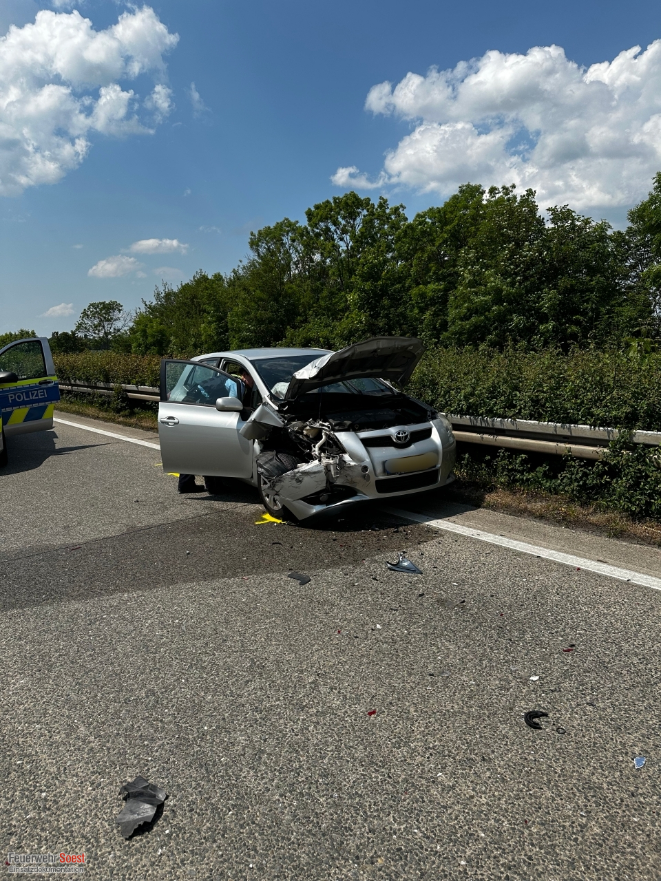 Bei einem Verkehrsunfall zwischen zwei Pkw wurden drei Personen leicht verletzt. Die Personen wurden vom Rettungsdienst in umliegende Krankenhäuser transportiert. Unsere Maßnahmen beschränkten sich auf das Absichern der Einsatzstelle und Reinigung der Fahrbahn.