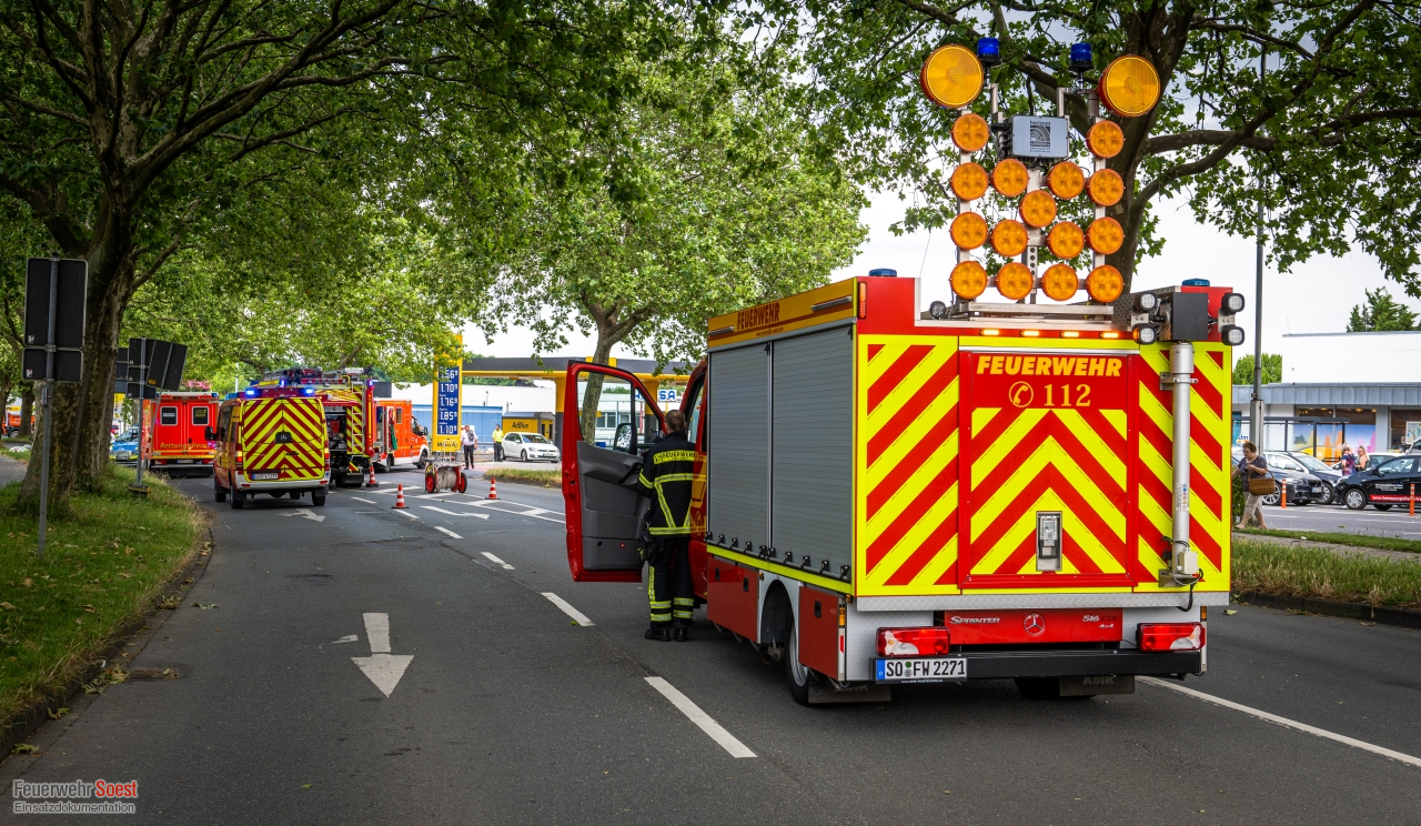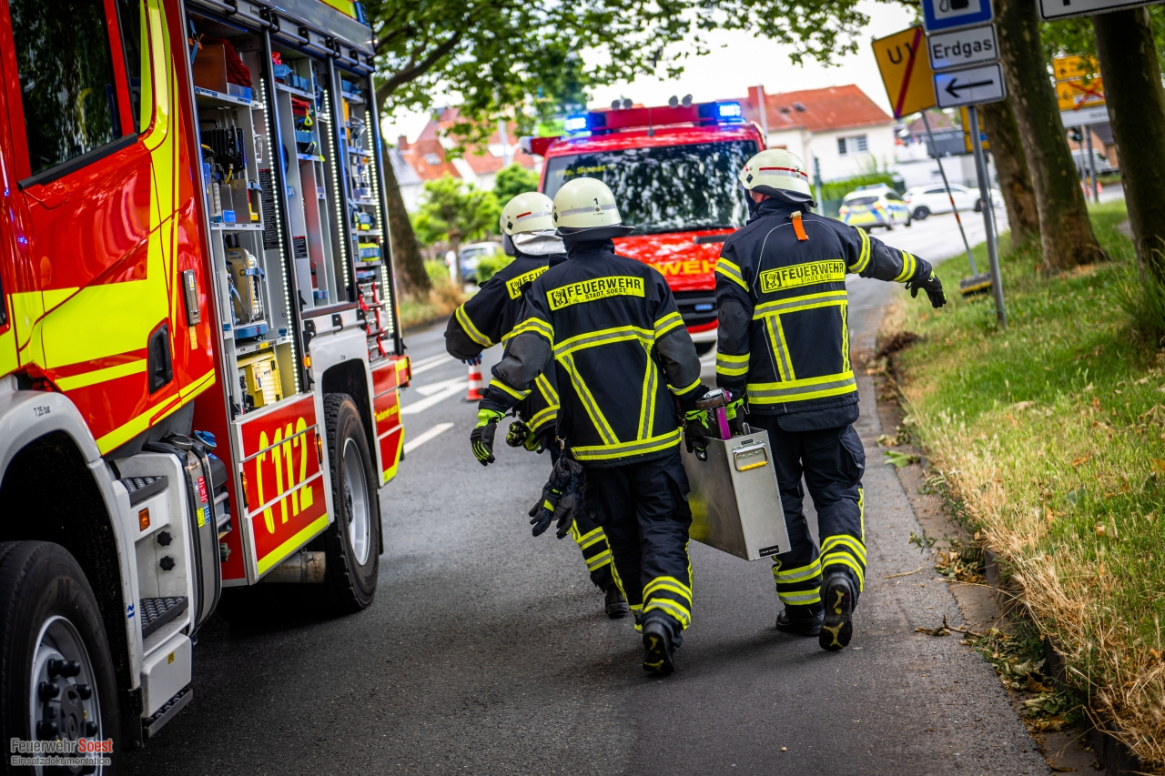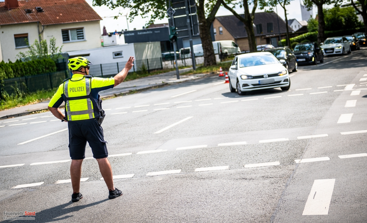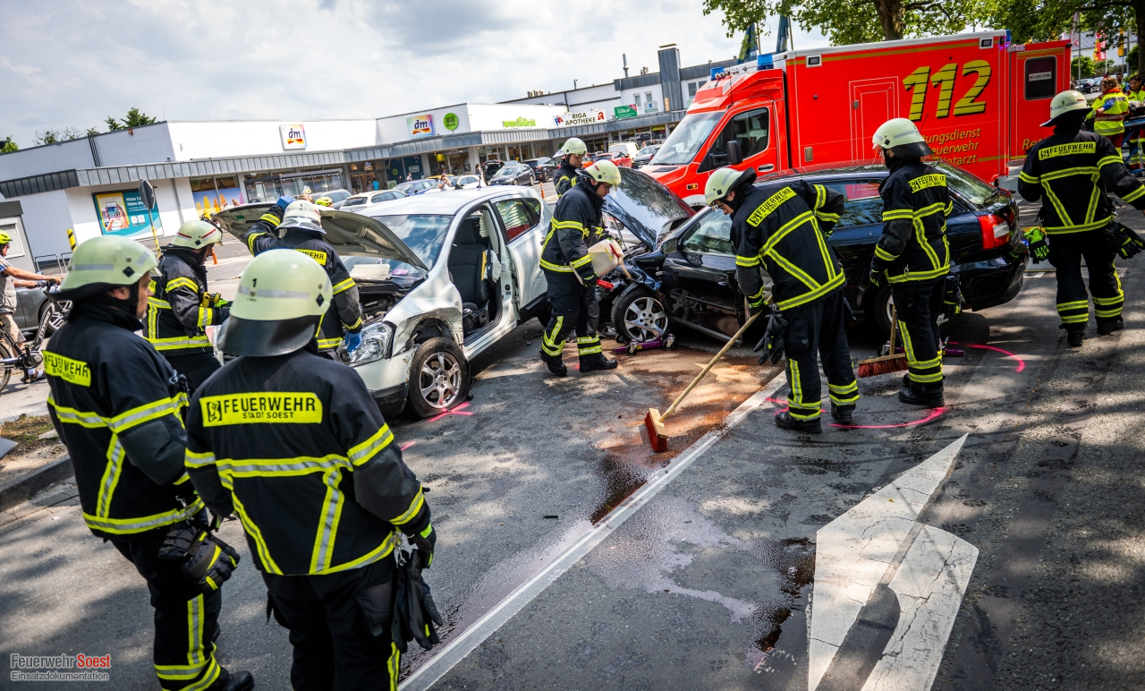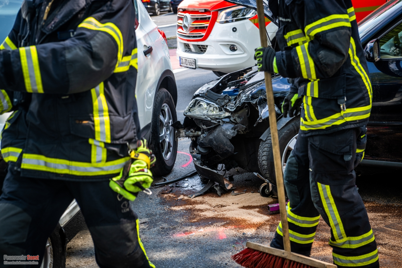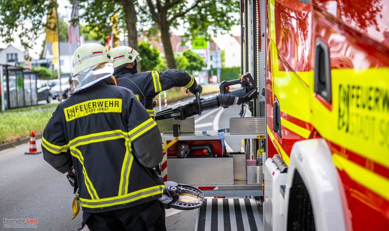 Bei einem Verkehrsunfall zwischen zwei Pkw wurden zwei Personen verletzt. An einem Pkw öffneten wir die Tür mittels Schere und Spreize, um die Person so schonender aus ihrem Fahrzeug zu bekommen.