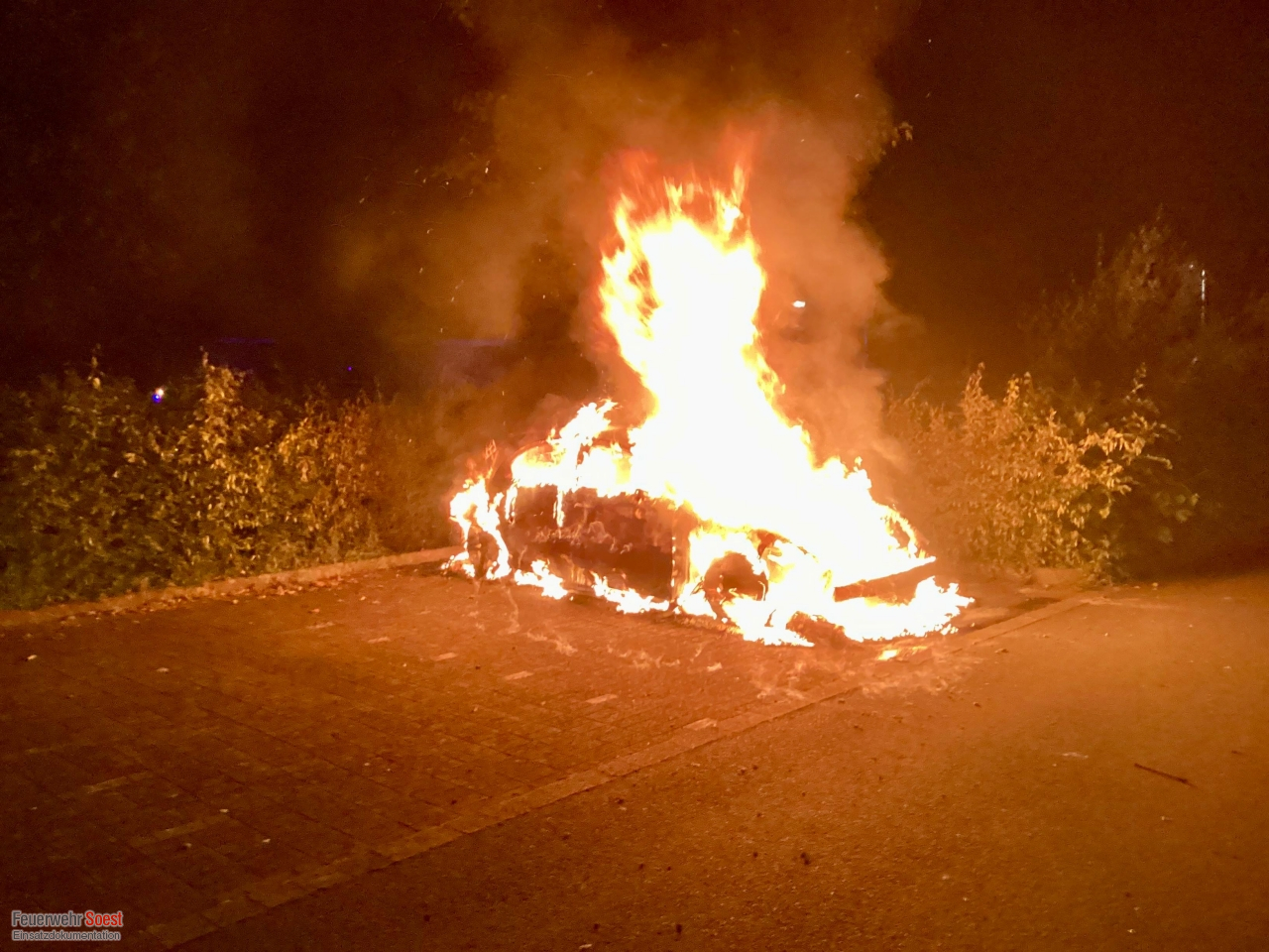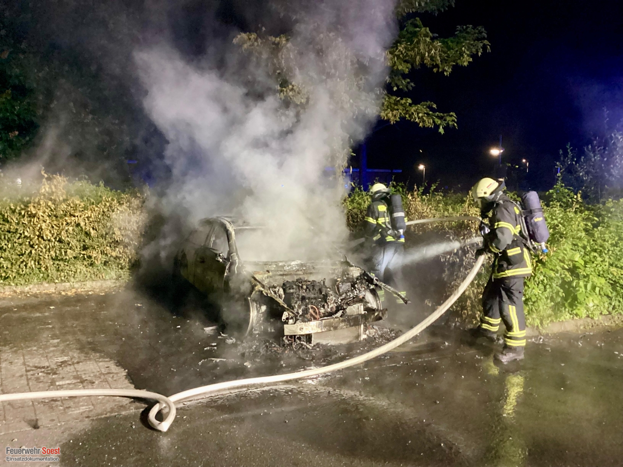 Ein in Vollbrand stehender PKW wurde mittels C-Rohr unter schwerem Atemschutz abgelöscht.