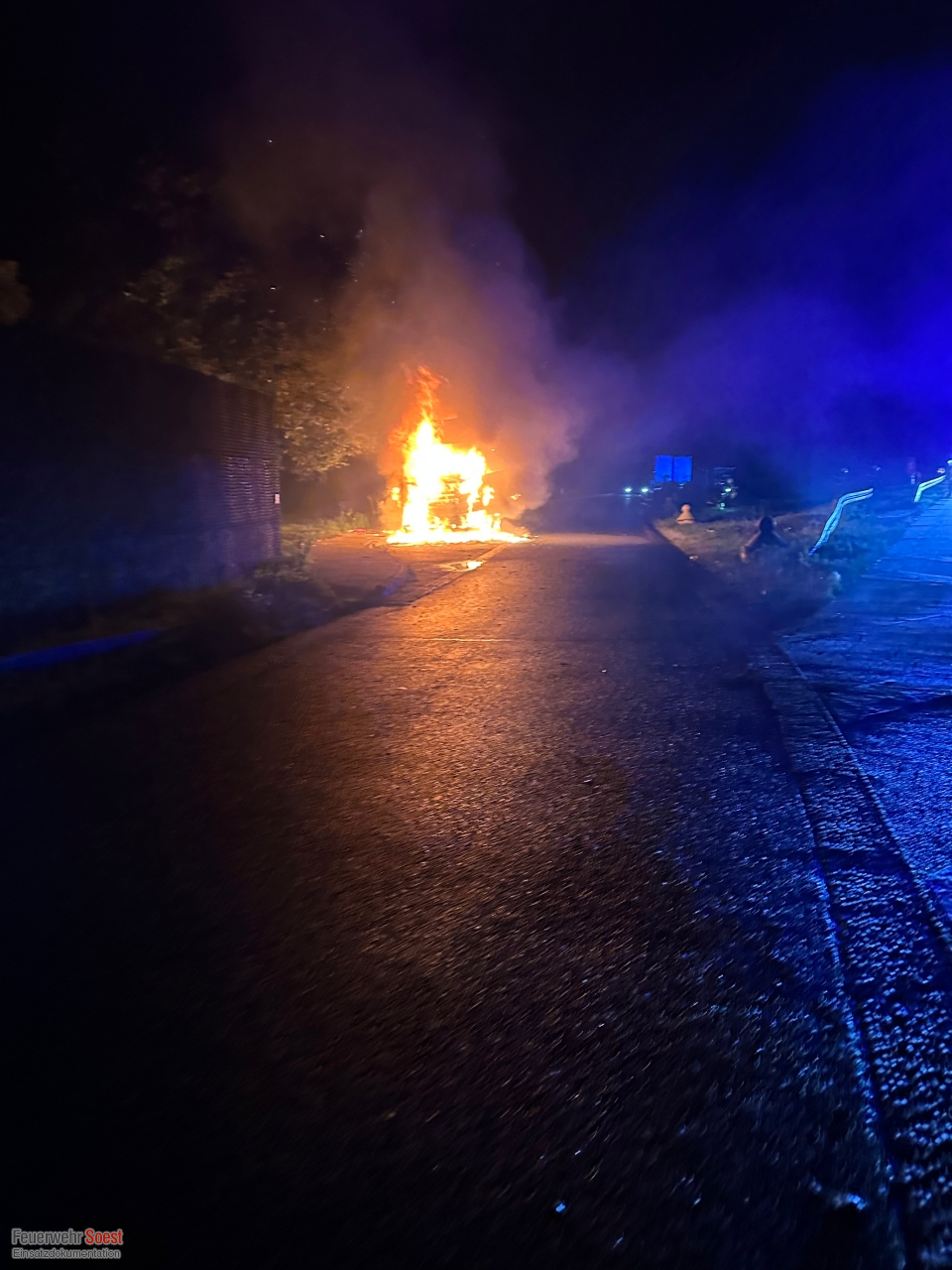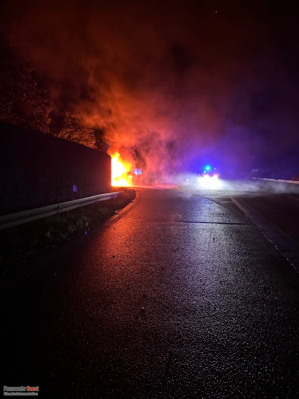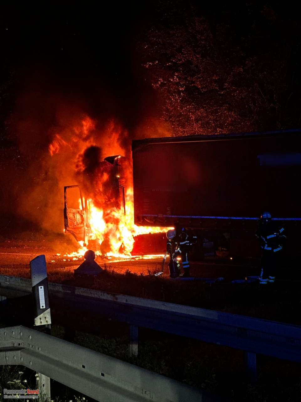 Beim Eintreffen der ersten Kräfte stand das Fahrerhaus des LKW bereits in Vollbrand. Umgehend wurde eine Brandbekämpfung mit zwei Trupps unter schwerem Atemschutz eingeleitet, um den Auflieger des LKW zu schützen. Dieses ist unseren Kräften auch gelungen. Eine Person wurde mit Verbrennungen an den Armen in ein umliegendes Krankenhaus transportiert.