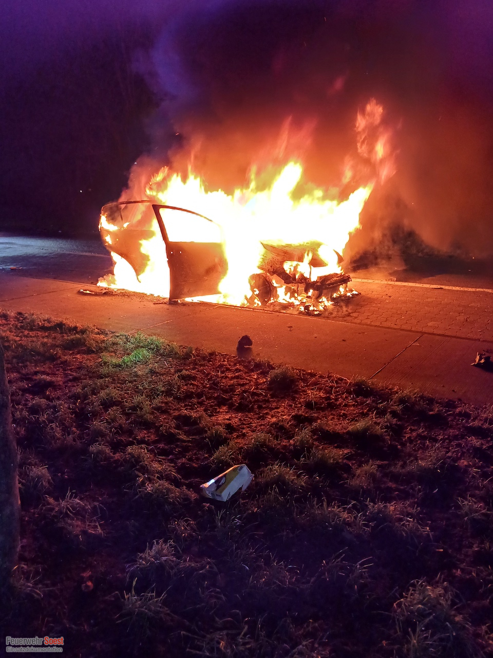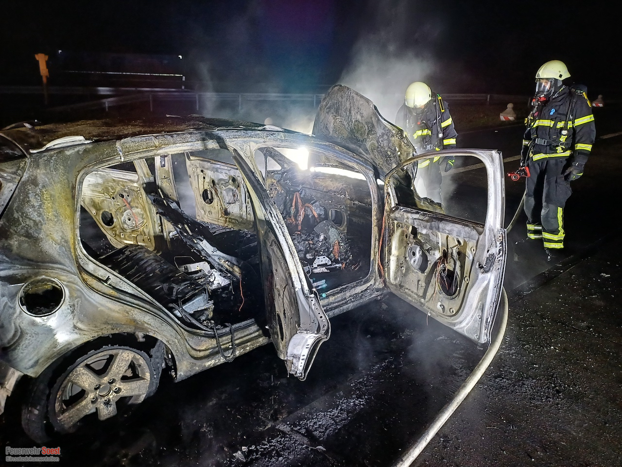 Ein brennender Pkw wurde von einem Trupp unter schwerem Atemschutz abgelöscht.