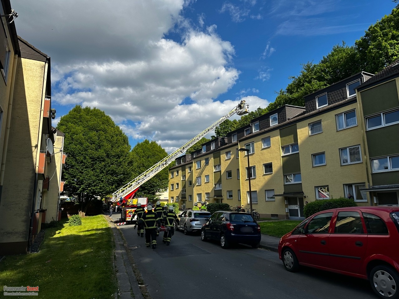 Gemeldet wurde eine Rauchentwicklung im Dachbereich eines Mehrfamilienhauses. Beim Eintreffen der ersten Kräfte konnte auch eine leichte Rauchentwicklung aus einem Regenfallrohr wahrgenommen werden. Das Fallrohr sowie der angrenzende Dachbereich wurden mit Hilfe der Drehleiter und tragbaren Leitern kontrolliert. Das Fallrohr wurde im Anschluss mit Wasser durchspült, um einen evtl. vorhandenen Schwelbrand ablöschen zu können. Nachdem diese Maßnahmen abgeschlossen waren, war keine Rauchentwicklung mehr sichtbar. Sicherheitshalber wurden die Bereiche erneut mit Hilfe einer Wärmebildkamera kontrolliert.