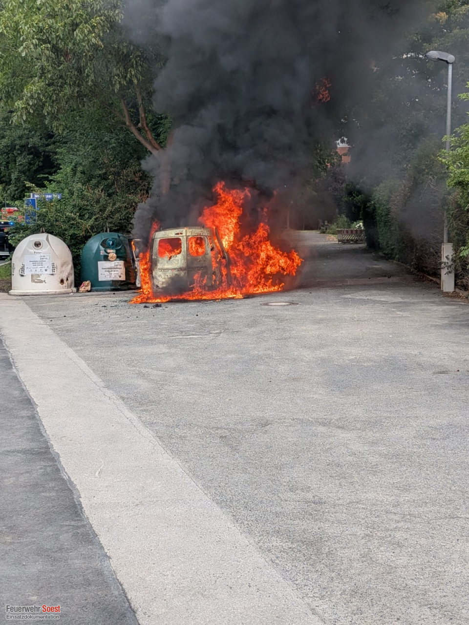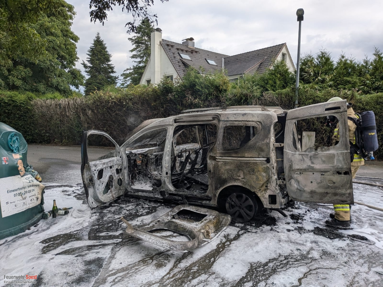 Ein brennender Pkw wurde von einem Trupp unter schwerem Atemschutz abgelöscht.