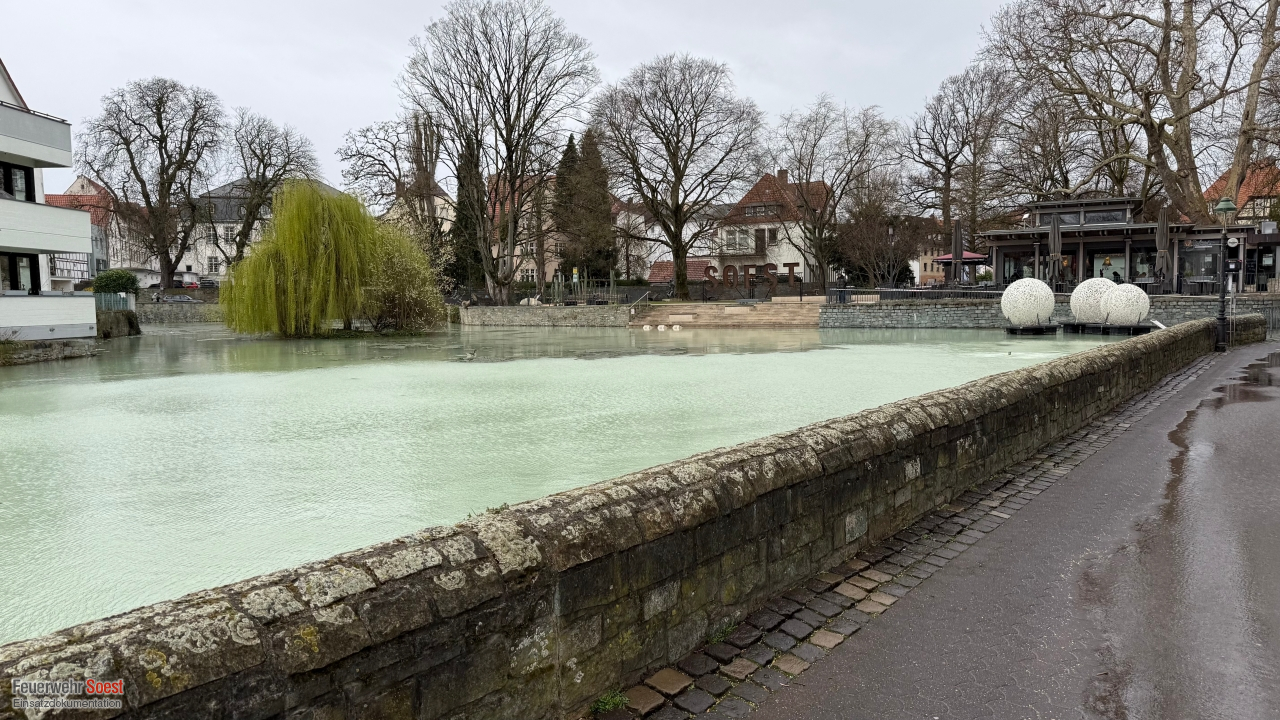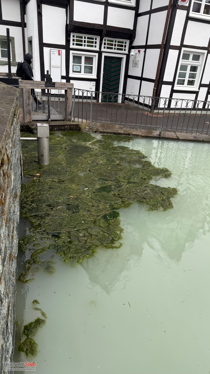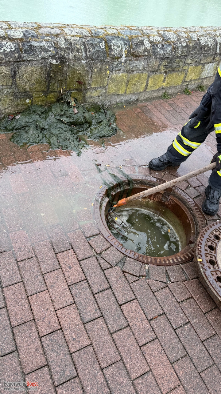 Aufgrund eines verstopften Abwasserkanals drohte der Große Teich überzulaufen. Durch uns wurde der Abwasserkanal wieder freigelegt.
